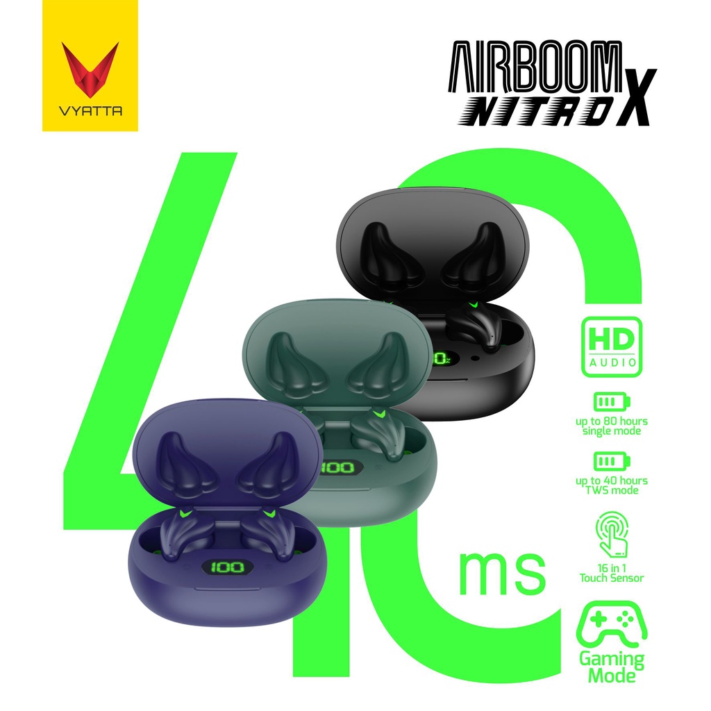 Alasan kenapa harus beli VYATTA Airboom Nitro X TWS Bluetooth Headset / Earphone Gaming Mode 40ms,16in1 Touch Sensor sekarang